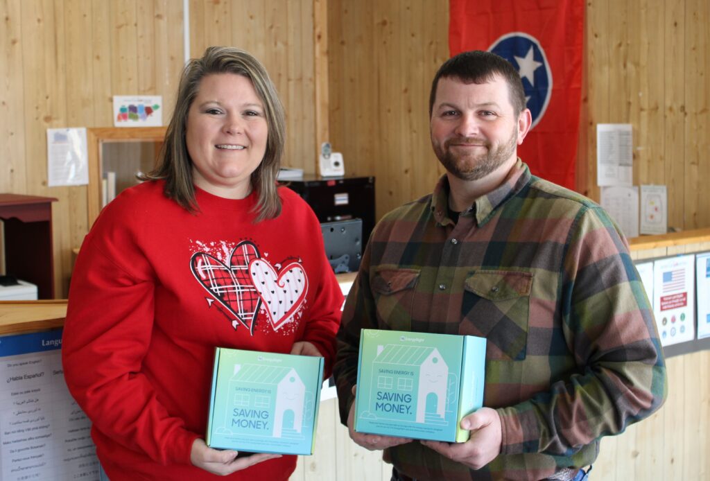 (February 19, 2026 – Linden, TN) — In partnership with the Tennessee Valley Authority, Meriwether Lewis donated 150 community kits to the South Central Human Resource Agency which serves Hickman, Lewis and Perry Counties. These energy efficiency starter kits are filled with items such as LED light bulbs and door sweeps to help homeowners save energy and better manage their power bill. Kits are available to any person who utilizes the LIHEAP program through the human resource agency or schedules a home energy audit with MLEC Energy Specialist Nathan Wagner.